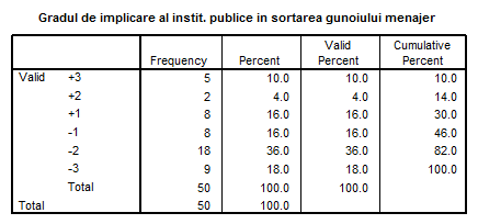 20. Cum apreciati gradul de implicare al institutiilor publice de profil in activitatea de sortare a gunoiului menajer? (incercuiti o singura cifra)