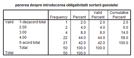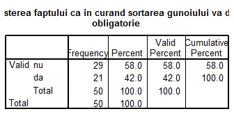 1. Opinii ale populatiei brasovene in legatura cu oportunitatea sortarii gunoiului menajer. |