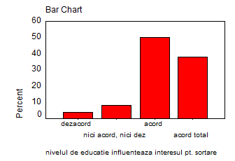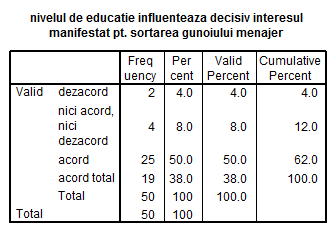 Nivelul de educatie influenteaza decisiv interesul manifestat pentru sortarea gunoiului menajer.