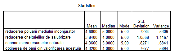 25. Incercuiti valoarea care exprima importanta pe care o acordati urmatoarelor aspecte legate de sortarea gunoiului menajer: