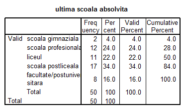 27. Ultima scoala absolvita de dvs. este: