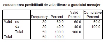H1: Mai mult de 50% din populatia brasoveana cunoaste faptul ca gunoiul menajer poate fi valorificat.