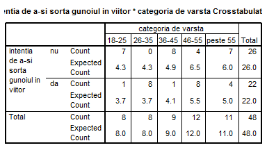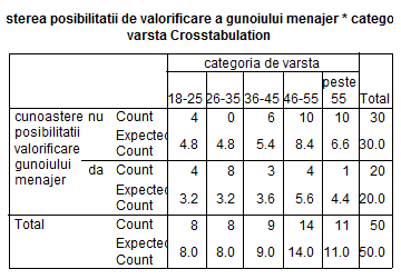 H0: Diferitele nivele de varsta nu exercita o influenta semnificativa asupra activitatii de sortare a gunoiului menajer de catre populatia brasoveana.