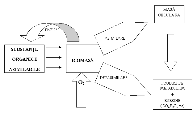 Desfasurarea fenomenelor biochimice caracterizate prin procese de asimilare sau de sinteza si prin procese de asimilare sau oxidare, este prezentata schematic in Fig. 1.