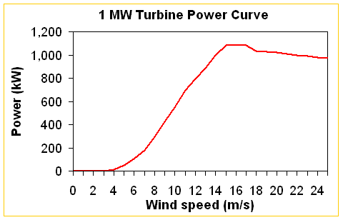 In tabelul de mai jos este prezentata variatia puterii diferitelor centrale eoliene in functie de viteza vantului.