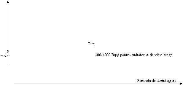 Considerind in figura 3.1. pe abscisa, perioadele de dezintegrare variaza de la timpi scurti (de ordinul secundelor) la durate foarte lungi de timp (milioane de ani) si in mod similar deseurile radioactive variaza de la cele ce contin cantitati minore de radionuclizi de viata lunga la cele care contin cantitati importante de asemenea radionuclizi. In mod consecvent, deseurile radioactive pot fi: (1) stocate pentru dezintegrare si apoi exceptate, (2) depozitate in facilitati de suprafata sau (3) izolate de biosfera in formatiuni geologice de adincime.