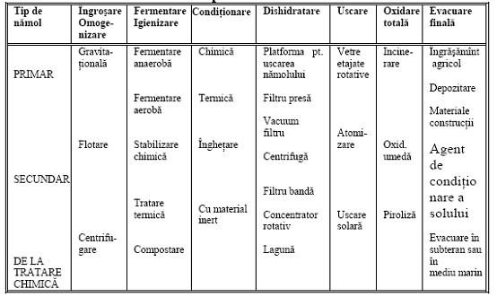 Procesele de prelucrare a namolurilor sunt multiple si variate, in functie de provenienta si caracteristicile lor, dar si in functie de modul final de evacuare.