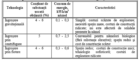 Date comparative intre diferite procedee de ingrosare a namolului