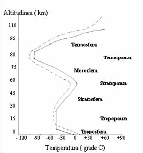 Figura 3.1. Structura atmosferei (linia continua - temperatura actuala ;