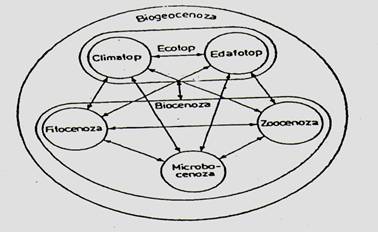 Sukacev (1961) propune ca sinonimie, denumirea de biogeocenoza (comunitati ale vietii si scoartei) (Fig. 6).