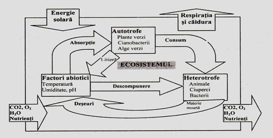 Ecosistemul este o unitatea functionala fundamentala a biosferei caracterizata de un tip determinat de interactiuni dintre componentele organice si anorganice si o configuratie energetica proprie ce asigura desfasurarea ciclurilor biogeochimice, circulatia substantei si transformarile energiei (Stugren, 1965).