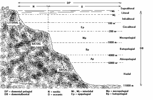 Fig. 11. Stratificarea pe verticala a unui ecosistem marin.