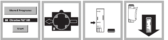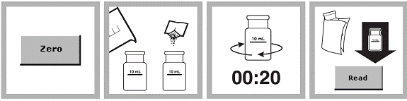 8.La un minut dupa adaugarea reactivului introduceti proba in suport pentru a citi concentratia in mg/l Cl2