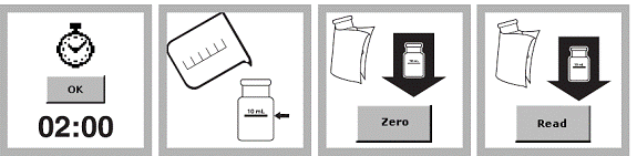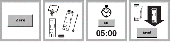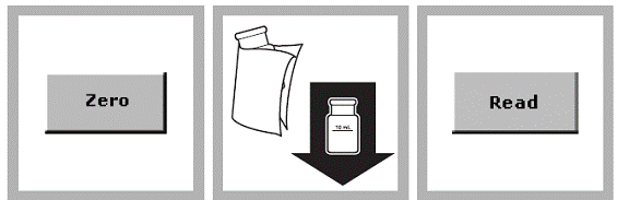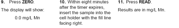10.La maxim 8 min dupa expirarea timpului introduceti proba in suport si apasati READ pentru a citi concentratia in mg/l Mn