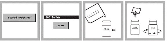 7. cand timpul de reactie expira (5 min) introduceti celula in suport cu linia de marcaj in fata si apasati zero.ecranul va arata 0 mg/l SO42-