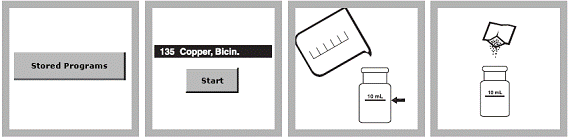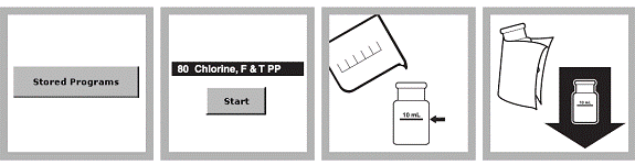 6.prepararea probei:se umple cea de-a doua celula cu 10 ml proba de apa.Adaugati continutul unui plic cu reactiv (DPD free chlorine powder pillows)peste proba de apa