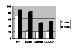 Lesiile uzate sunt puternic alcaline (pH=13-14), contin sulfura de sodiu, sulfit de sodiu, hidrocarburi dispersate.