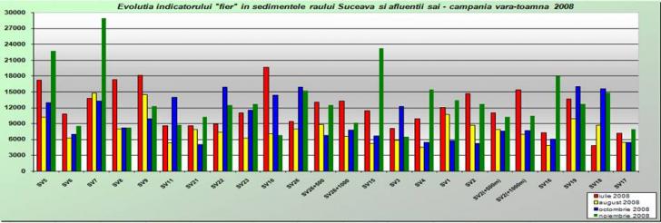 Fig. 20. Evolutia indicatorului "fier" in sedimente- raul Suceava si afluentii sai in cadrul campaniei vara - toamna