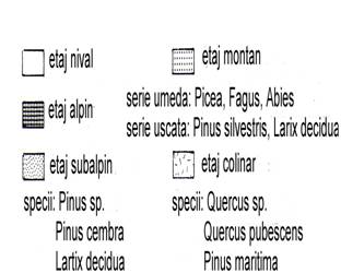 In functie de versant exista diferente si in ceea ce priveste altitudinea de extindere a etajelor (Fig. 7-47).
