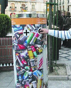 Asa arata punctele de reciclare e vorba de containere unde se arunca numai baterii si care se instaleaza prin oras. S-au putea face foarte usor si la noi daca ar exista vointa in administratia locala.
