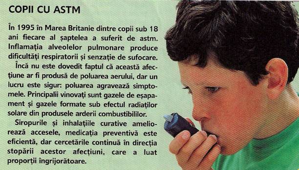 Un aspect deosebit il prezinta azbestul, mai periculos decat se presupunea cu cativa ani in urma si a carui prezenta a fost demonstrata atat in atmosfera urbana cit si in plamanii (corpi azbestizici pulmonari) unui procent apreciabil din populatia urbana neexpusa profesional.