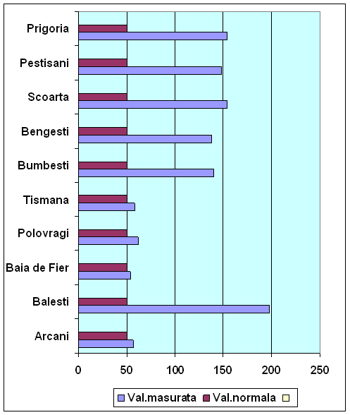Exemplificam aceasta crestere prin fig 3.1, plansa 4, care arata variatia concentratiei nitratilor din apa fantanilor din localitatile studiate.