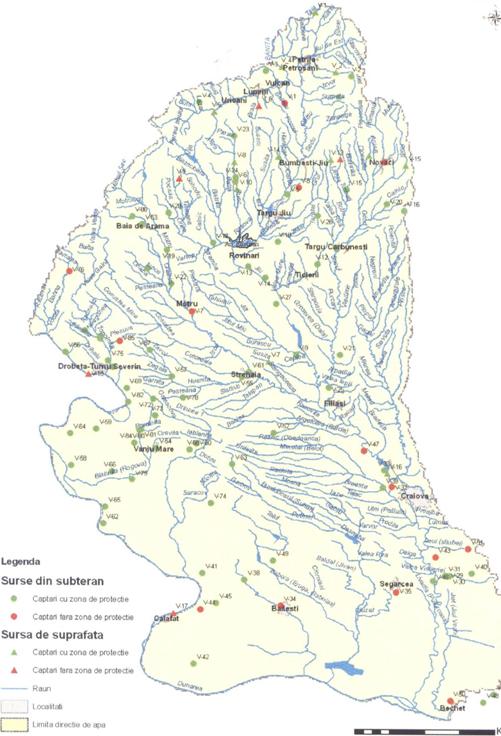 Fig 3.2 zone de protectie pt captarile de apa in Bazinul Hidrografic Jiu