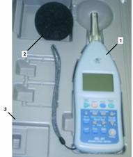 1- sonometru; 2 – aparatoare de vânt; 3 – geanta de transport.