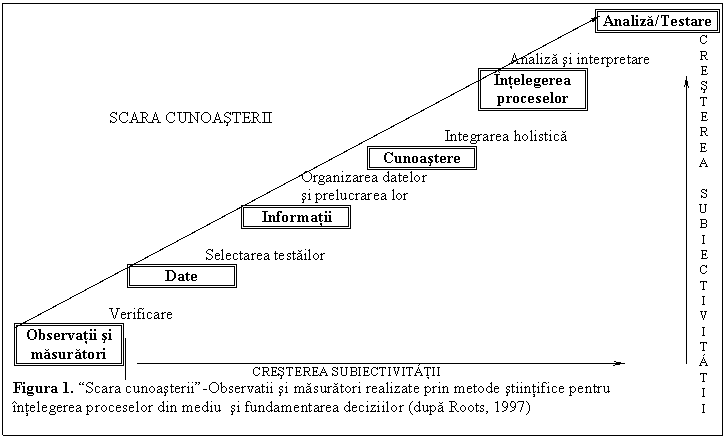 Analiza si reevaluarea relatiei economie-mediu trebuie abordata functie de magnitudinea efectelor, a riscurilor produse (sau care s-ar putea produce) la scara geografica (Box. I.) dar si in timp, aceasta constituind baza pentru elaborarea unei politici de mediu si a unui management de mediu viabil. Analiza simplista "cauza/sursa - efect" (unic sau/si propagat in componentele de mediu) la o scara de timp sau spatiu neadecvata poate duce la formarea unei imagini nerealiste asupra aparitiei si a magnitudinii unor riscuri viitoare (riscuri greu previzibile si mult mai dificil de gestionat, Fig. 3.). Scara timpului de extindere a unui eveniment de mediu necesita investigatii uneori chiar dintr-un trecut indepartat, este dependenta de performantele tehnologice, de gradul de dezvoltare a SSE si nu in ultimul rand de performantele economice in inter-relatie: Economie - Tehnologie - Mediu din diferitele perioade; astfel se disting diferite categorii de timp (Tab 1.).