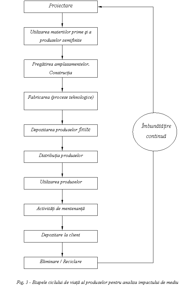 In fiecare dinte aceste etape se recomanda sa fie luate din considerare urmatoarele aspecte ecologice: impactul ambiental al deseurilor rezultate, poluarea si degradarea solului, contaminarea apei si a aerului, nivelul zgomotului, consumul de energie si resurse naturale, efetul asupra ecosistemelor. Analiza include si impactul ambalajului asupra mediului, in etapele mentionate.