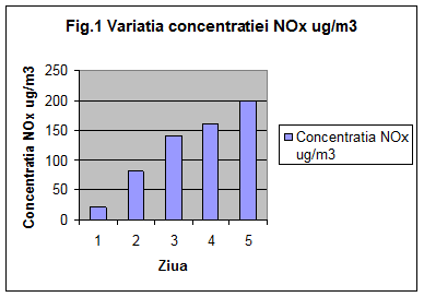 Valorile care depasesc concentratia medie admisa(40 μ/m3) sunt : 82 μ/m3, 142 μ/m3, 161 μ/m3 si respectiv 199 μ/m3.
