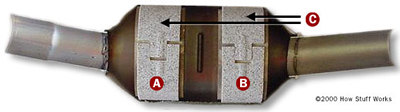 Un convertizor catalitic cu trei actiuni: Observati cei doi catalizatori separati
