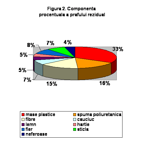 Desi se impune necesitatea reciclarii maselor plastice si a cauciucurilor, procentul este foarte redus. In consecinta, 70% din masa prafului rezidual este alcatuita din fibre si plastic.