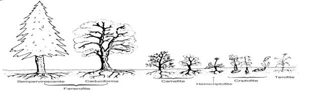 Referitor la formele de viata (biotice) (tipuri biologice), initial, au fost definite, la plante, 6 mari categorii: