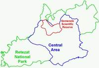 Parcul National Retezat este situat in Carpatii Meridionali (Judetul Hunedoara are o suprafata de 54400 ha (1935) si o altitudine cuprinsa intre 800 si 2509 m . Este contrat de circul glaciar Bucura , cuprinde aproximativ 40 de varfuri ce trec de 2200 m , in medie depasind 2350 m . Zona de protectie ocupa centrul masivului . Prima zona de protectie integrala are caracter stiintific (11466 ha fiind interzisa orice exploatare ( miniera , pasunat , vanat , pescuit , culegerea fructelor , turism camping ) . A doua zona este mai putin riguroasa , pasunatul fiind permis 2 luni pe an iar septelul este restrans . In prima zona accesul este permis doar cu autorizatie din partea Comisiei Monumentelor Naturii , pe anumite itinerarii si teritorii . Parcul este declarat rezervatie a biosferei .