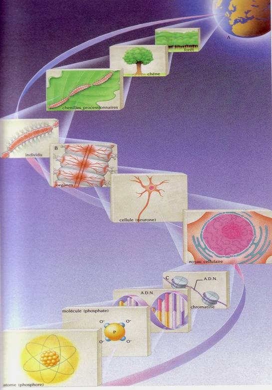 Fig. 30. Nivele de organizare, integrare si ierarhizare in biologie si ecologie (dupa Larousse, 1999).
