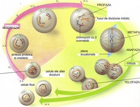b. Diviziunea indirecta (mitotica) este procedeul cel mai frecvent al metazoarelor. Ea este de doua feluri: mitoza si meioza.