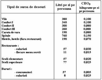Tabelul 3.1 Volumele de apa uzata rezultate din utilizarile domestrice, precum si de incarcarea cu substante organice (in functie de CBO5 al apei).