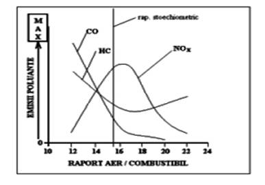 Emisiile de poluare depind in esenta de tipul motorului, de performantele tehnice ale acestuia si in special de raportul cantitativ aer / combustibil. Foarte important din acest punct de vedere al poluarii mediului putem proceda la o sistematizare dupa: