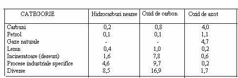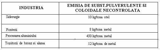 In acest caz rezulta urmatoarele categorii de poluanti: