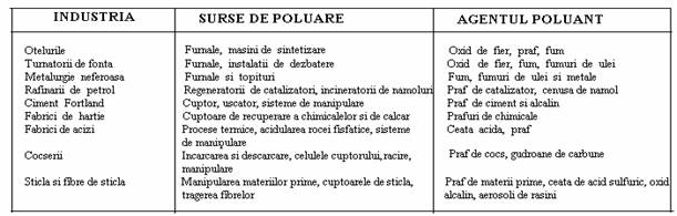- Surse fixe: centrale termice si electrice, fabrici si uzine chimice etc.