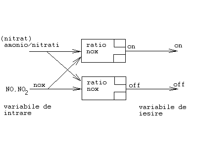 Prin metodele tehnicii fuzzy s-a rezolvat problema conducerii procesului de aerare. Eliminarea azotului si fosforului necesita trei zone diferite, doua fiind determinate de aerarea intermitenta intr-un tanc (vas) si a treia in vas anaerobic. Debitul de influent se schimba mult in timp, ca si concentratia apelor reziduale si deci planificarea aerarii nu poate fi fixa, ceea ce recomanda utilizarea unui RLF, care are ca intrari semnalele prezentate in fig. 1.4. Structura RLF pentru comanda oxigenului in procesul de aerare: