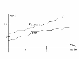 Experimentarile s-au facut schimband debitul de ape reziduale la t=0 de la 3030 m3/zi la 5030 m3/zi si considerand concentratiile neschimbate. S-a masurat concentratia la iesire de azot anorganic si s-a constatat ca un RLF, fig. 1.5, ofera performante mai bune decat un regulator P-conventional.