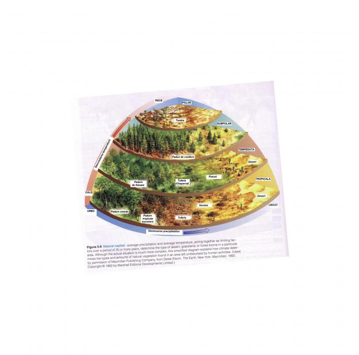 Tipologia si dispunerea vegetatiei pe verticala si orizontala (altitudinal si latitudinal), in biomuri si ecosisteme, in functie de climat (in special temperatura si umiditatea). Fig. 6-49. Influenta climatului (aici sugerat de cei maiCiteste tot ... 188 cuvinte