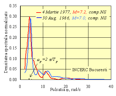 Figura 1 Densitatea spectrala de putere normalizata pentru componenta NS a inregistrarilor cutremurelor din 4 Martie 1977 si 30 August 1986 la statia INCERC in Estul Bucurestiului