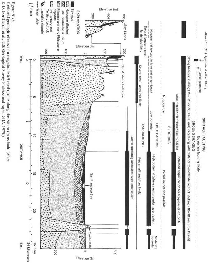 Un caz analog ar fi si Sacramento sau Menlo Park in raport cu falia San Andreas (fig. 8.33). Codurile de proiectare in astfel de zone trebuie sa respecte aceste considerente vizand relatia dintre substrat si tipul de cladiri / blocuri ce se construiesc.