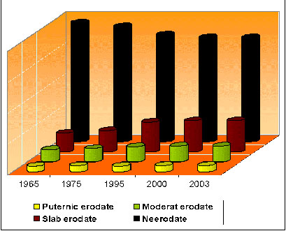 Eroziunea - ca forma de degradare a solului sau a rocilor, se datoreaza actiunilor ploilor, vantului si omului care prin lucrarile agricole, a distrus textura solului, i-a dezgolit in fata radiatilor solare si l-a saracit de asociatiile vegetale naturale.
