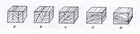 a - drepte; b - aplecate; c - deversate; c - culcate; e - rasturnate.