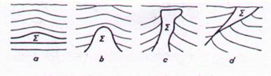 Fig. 27. Tipuri de falii in cazul stratelor orizontale :