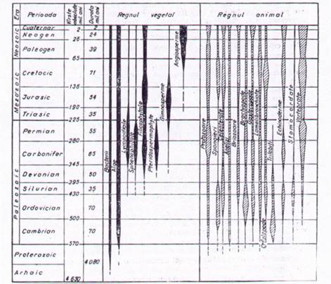 Repartitia geologica a principalelor grupe de organisme este prezentata in tabelul de mai sus.